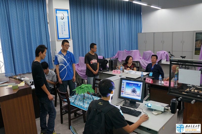 本次决赛由力学与工程学院院长助理、国家级力学实验教学示范中心常务副主任高芳清教授主持。出席本届“力学创新实验大赛”决赛的嘉宾有:西南交大设备及实验室管理处杨平副处长、宋宋世军科长、ok138cn太阳集团古天乐教务处卫飞飞科长。决赛分四个作品评审组,分别由力学与工程学院龚晖、戴振羽、蔡力勋、李映辉4位教授分别担任评审组长,由力学与工程学院葛玉梅、刘菲、高磊、鲁丽、朱志武、刘宇杰、李翔宇、江晓禹、西华大学力学实验中心古滨等12位教授与副教授担任评委。